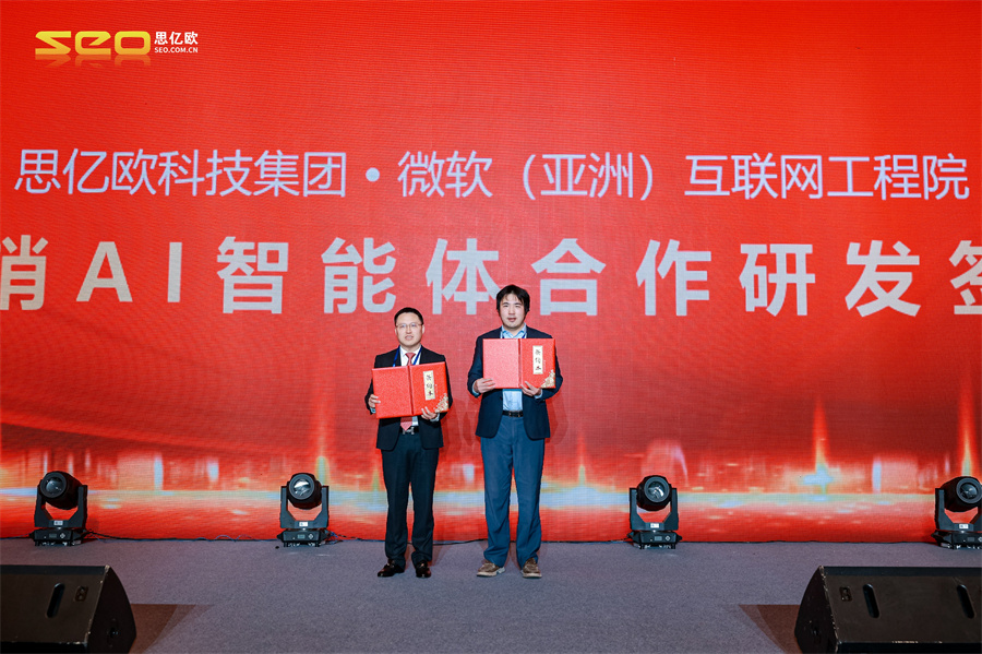 在本次大会现场,思亿欧集团与微软(亚洲)互联网工程院隆重举行了外贸营销AI智能体合作研发的签约仪式。作为多年的合作伙伴,微软与思亿欧始终保持着紧密的交流与协作,此次合作将充分结合微软的云计算与AI技术优势,深入赋能外贸营销领域,开发精准高效的智能营销系统,助力中国外贸企业更好适应国际市场需求,也将进一步提升外贸快车产品的市场竞争力,为外贸行业数字化转型注入全新动力。
